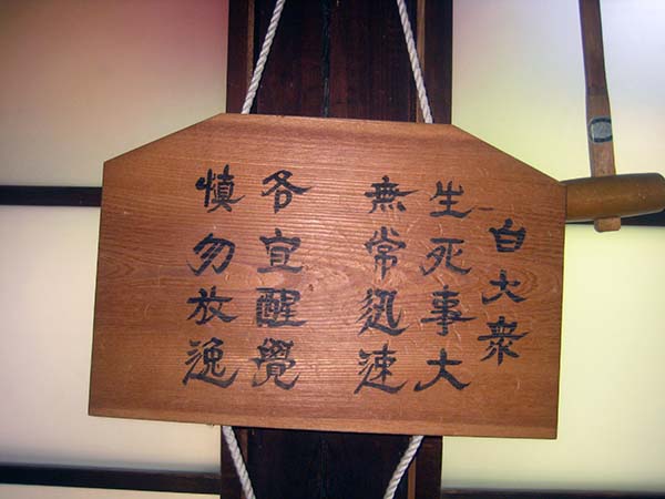 この「板」には「白大衆 生死事大、無常迅速、各宜醒覚、慎勿放逸」と書いてあります。